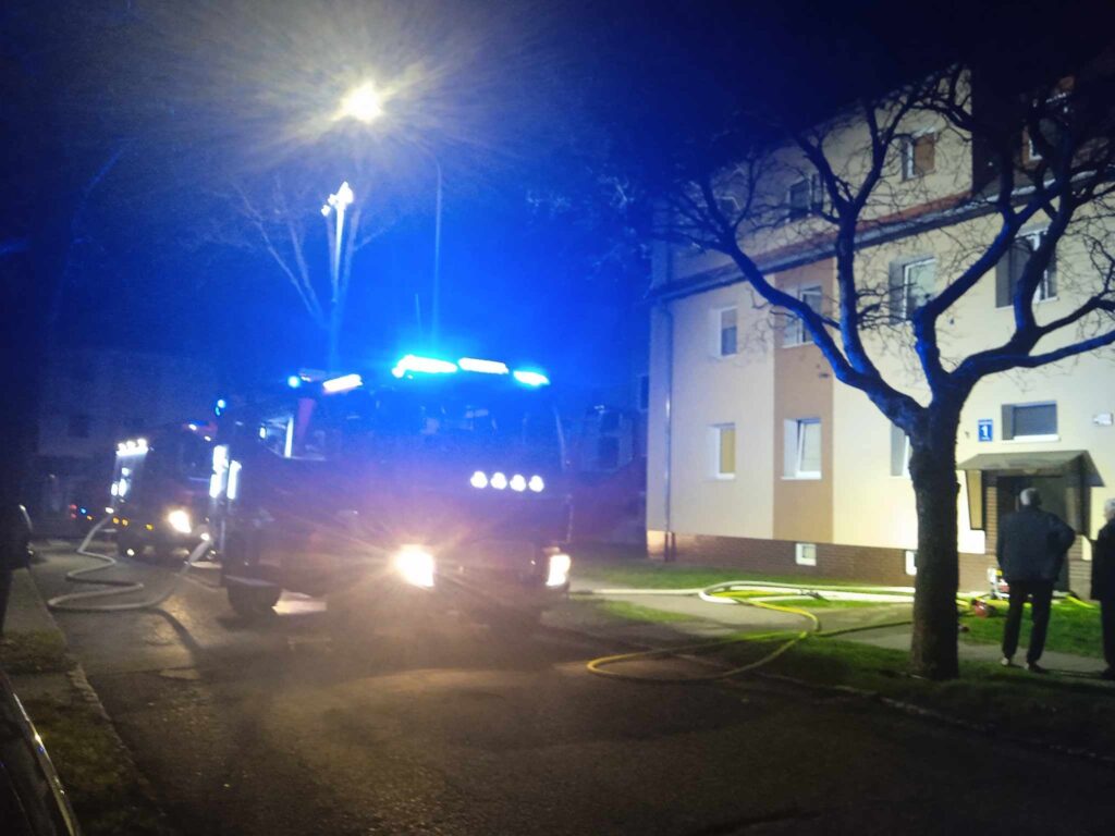 O godzinie 23 wpłynęło zgłoszenie o pożarze piwnicy w Policach przy ulicy Odrzańskiej. Po przyjeździe na miejsce zastaliśmy rozwinięty pożar i bardzo duże zadymienie klatki schodowej w związku z tym w pierwszej kolejności trzeba było ewakuować mieszkańców budynku ewakuowano 9 osób w tym 3 dzieci.