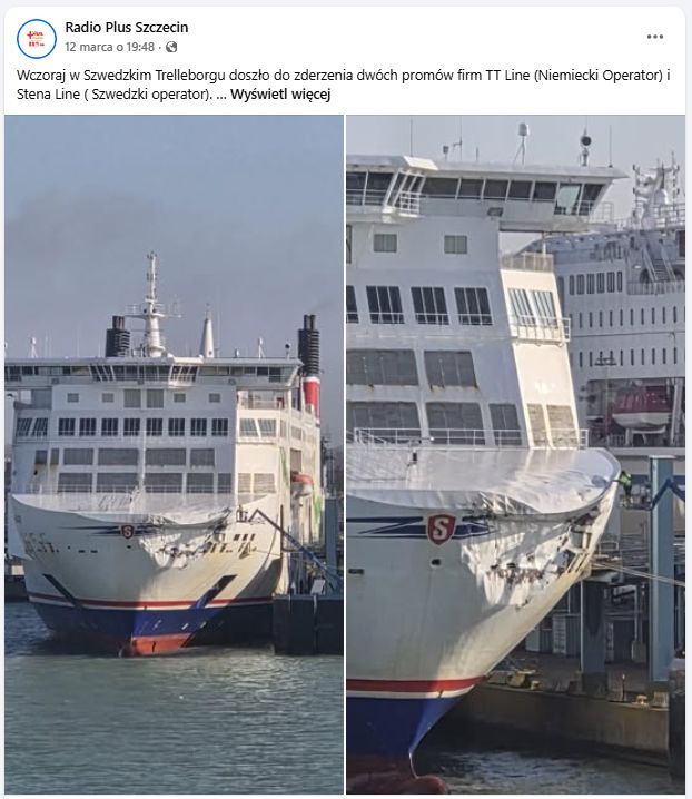 Jak już informowaliśmy w środę 11.03.2026 w porcie Trelleborg (Szwecja) doszło do zderzenia promu m/s Tinker Bell należącego do TT-Line z promem m/s Skåne. Na szczęście nikt nie został ranny i nie było wycieku paliwa. Mamy komentarz obu przewoźników.