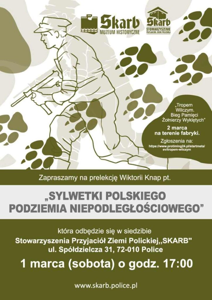 O godzinie 18.00 w Muzeum Historycznym „SKARB” w Policach odbędzie prelekcja Wiktorii Knap na temat „Sylwetki polskiego podziemia niepodległościowego”.